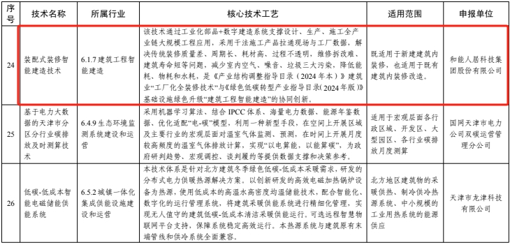 活動得到了業界的積極響應和廣泛參與,經過專家組認真評議和遴選,和能人居科技集團裝配式裝修智能建造技術成功入選《天津市綠色技術推廣目錄(2024年版)》。