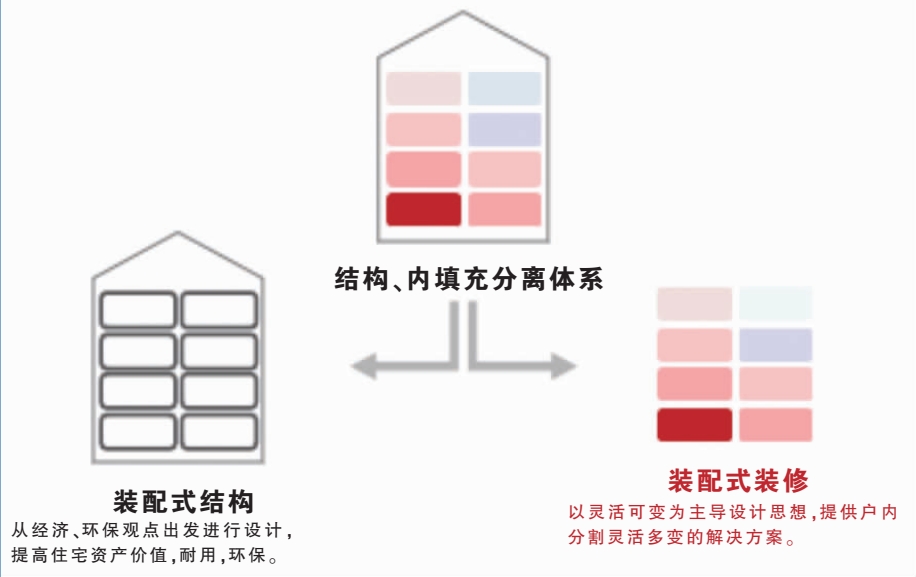 結構與內裝修、管線三分離(SI理念),內裝修獨立于建筑結構,方便全壽命期維修拆改。