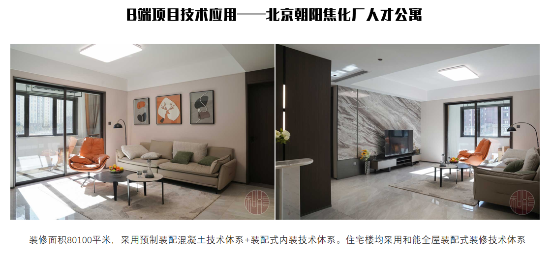 在實(shí)踐方面,裝配式裝修項(xiàng)目所采用的綠色部品體系全屋應(yīng)用比傳統(tǒng)裝修減碳57%,顯著降低碳排放,為環(huán)保賦能。同時(shí),現(xiàn)場(chǎng)采用干法施工,實(shí)現(xiàn)全流程綠色建造,減少環(huán)境污染,提高施工效率。通過輕運(yùn)維模式,可以實(shí)現(xiàn)便捷高效的建筑運(yùn)維管理,降低運(yùn)維成本和復(fù)雜度。