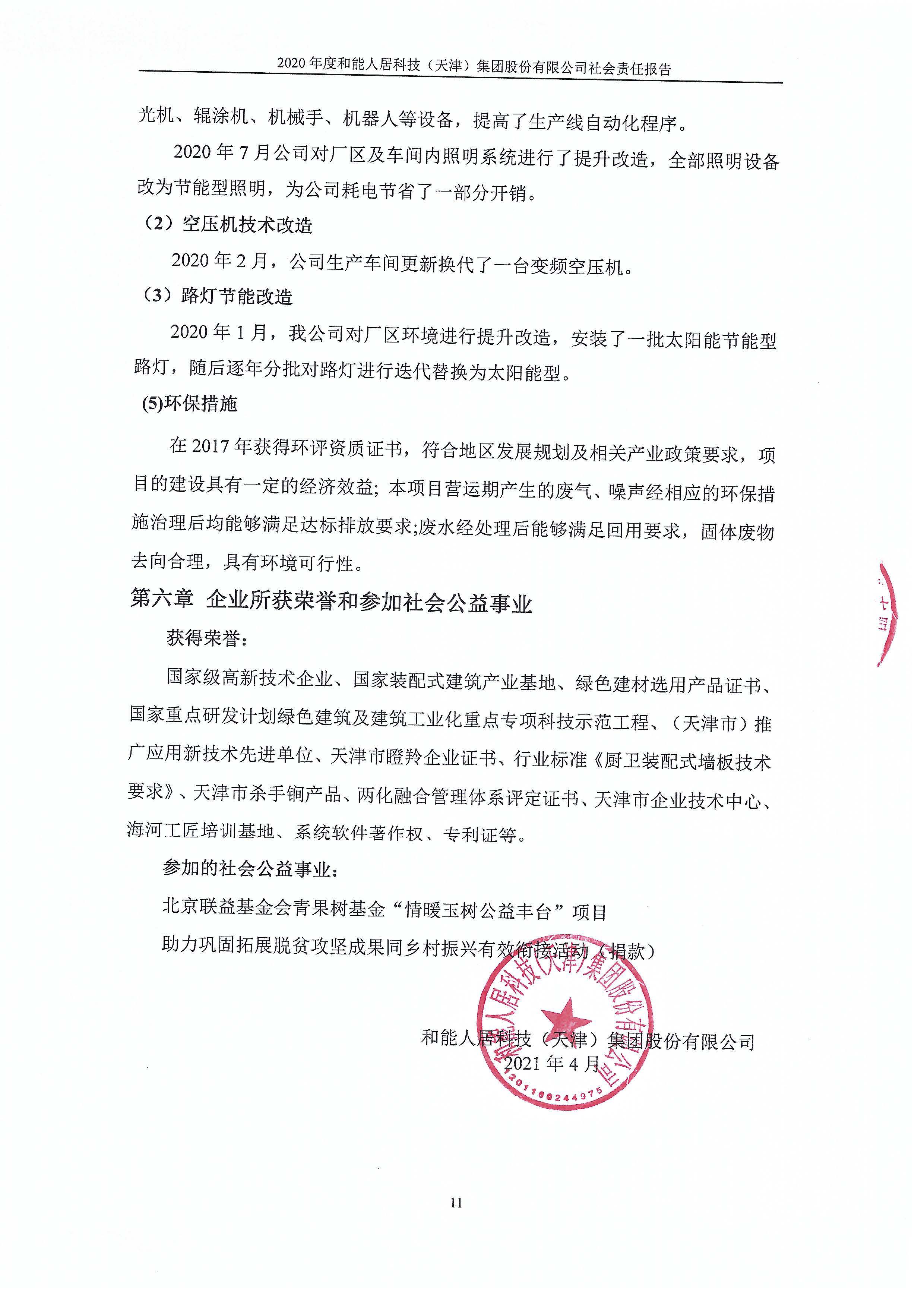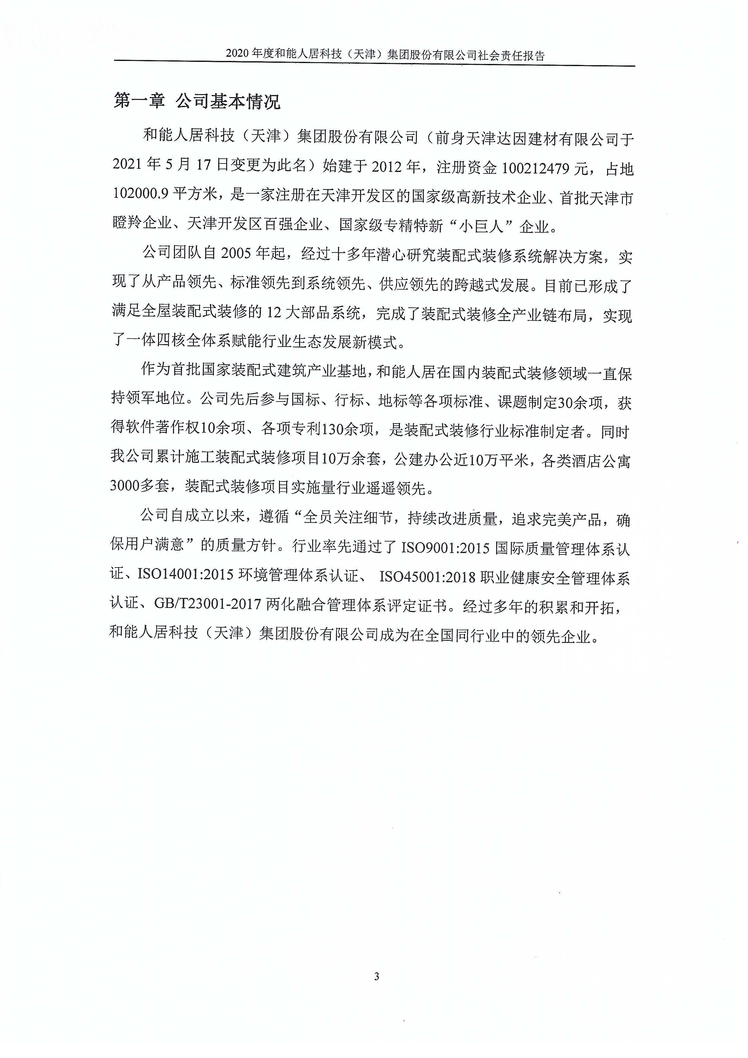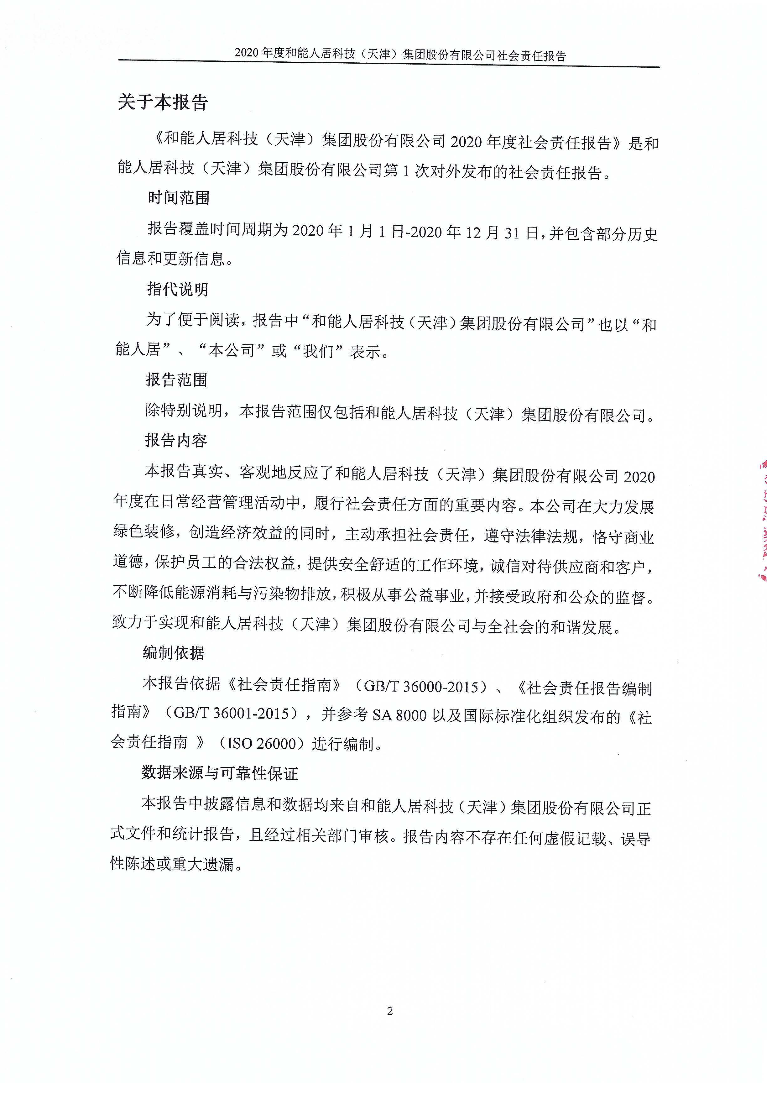 和能人居科技(天津)集團股份有限公司2020年度社會責任報告