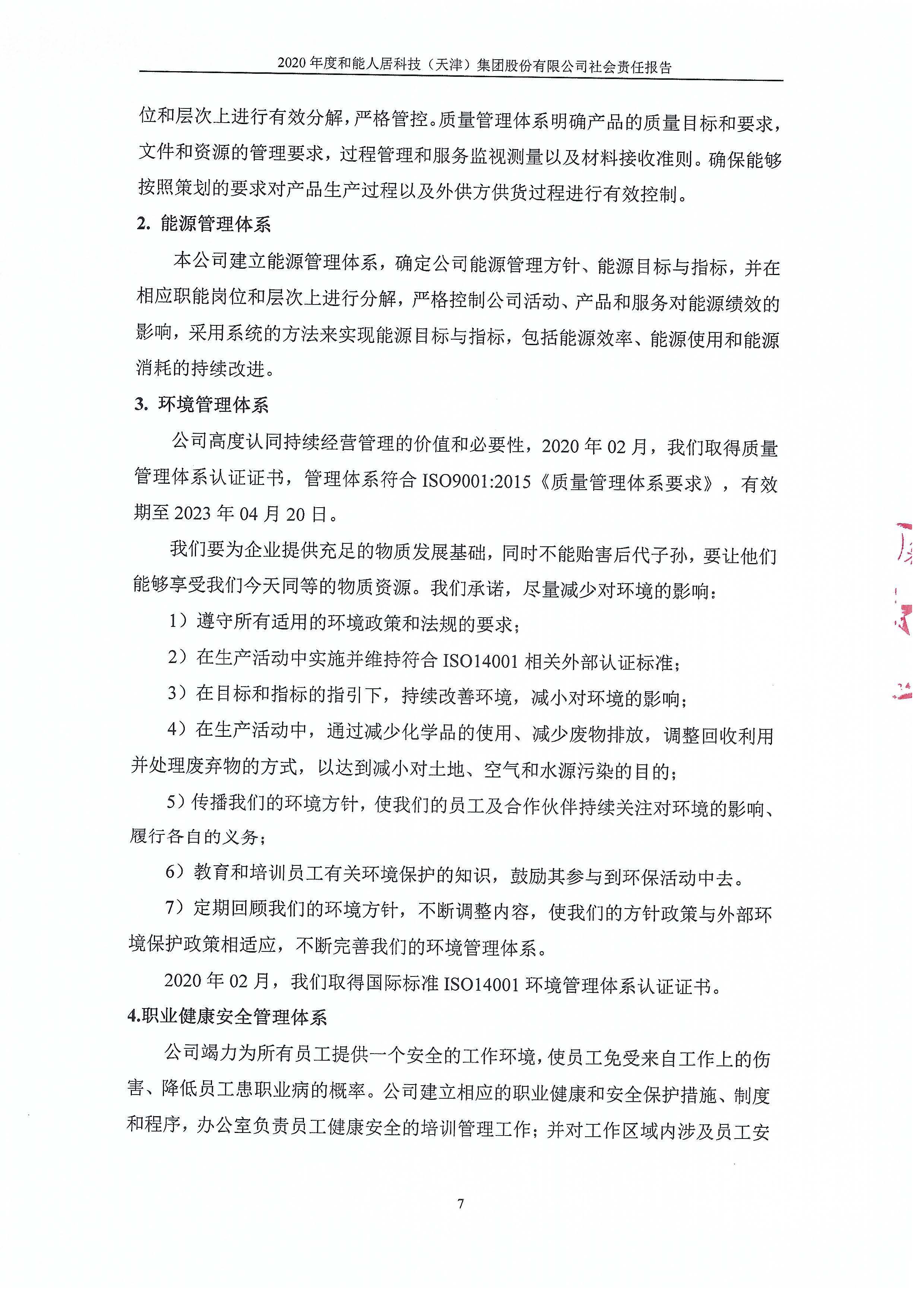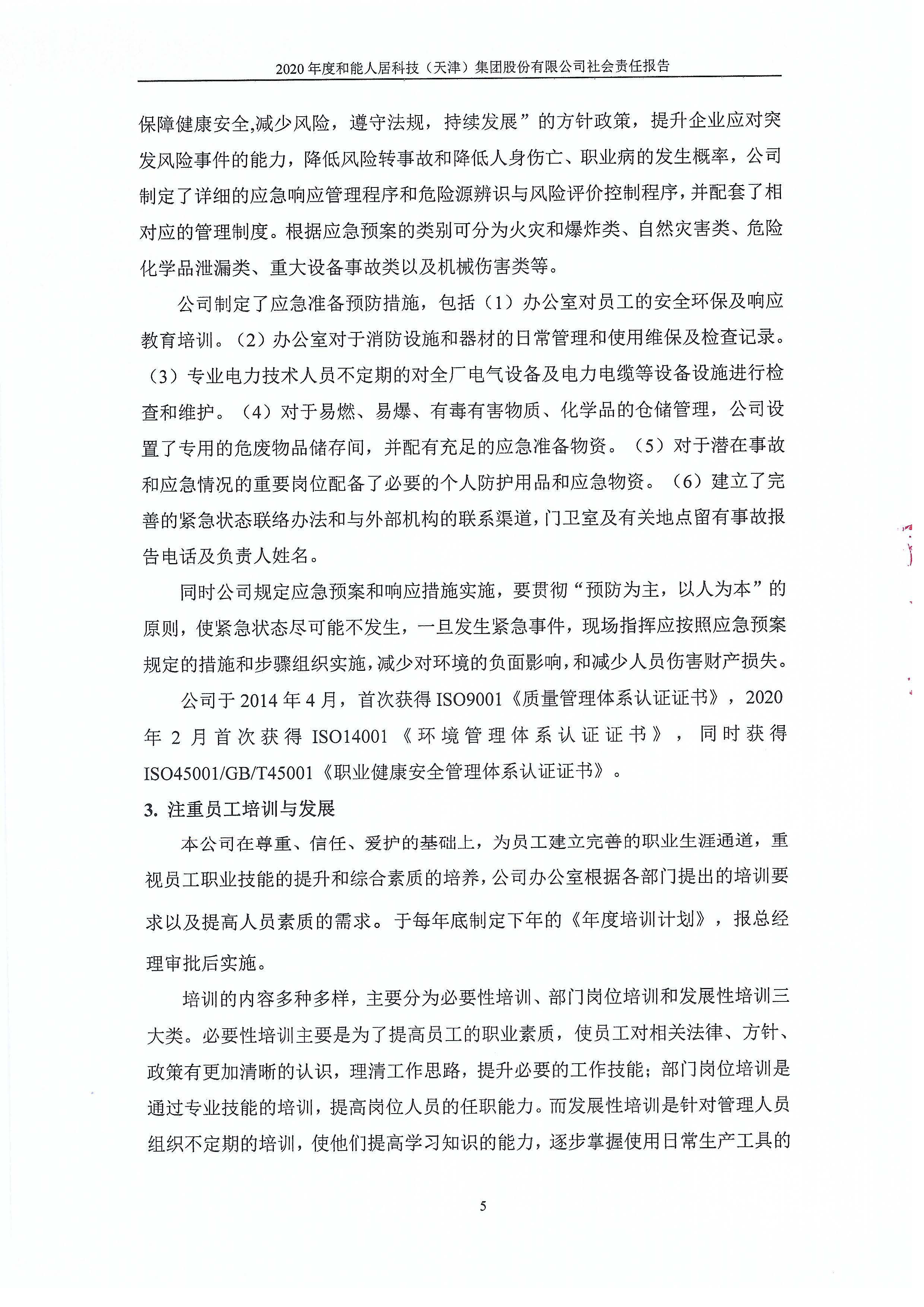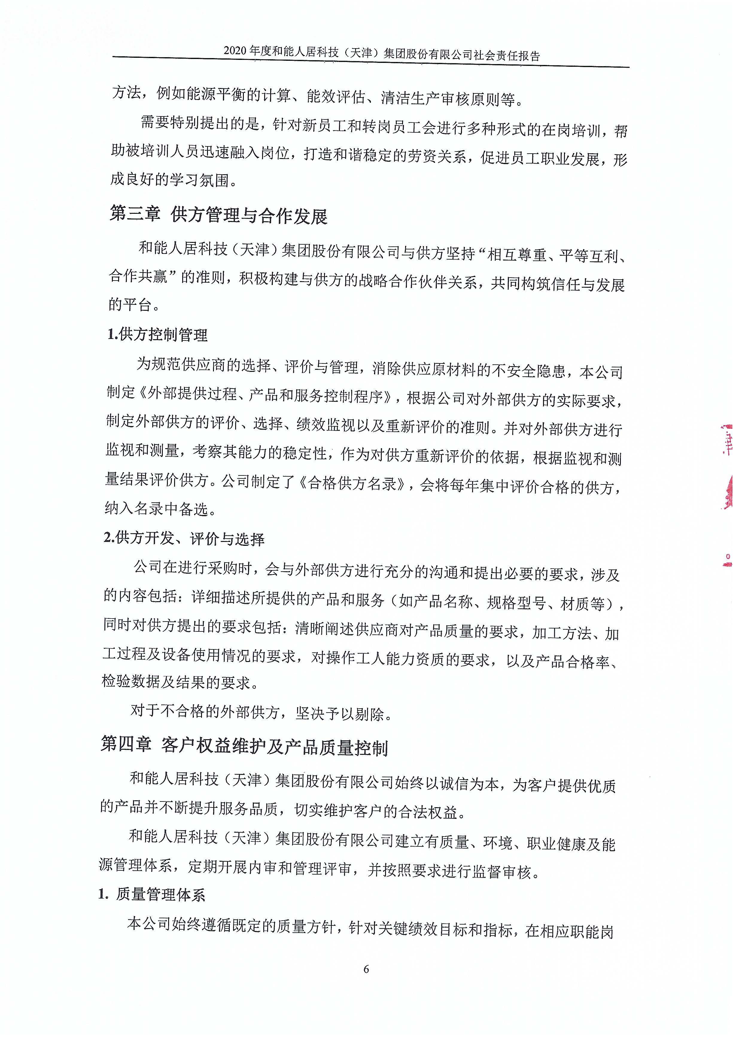 和能人居科技(天津)集團股份有限公司2020年度社會責任報告