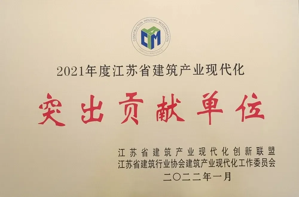 1月12日,江蘇省建筑產業現代化創新聯盟2021年會暨經驗技術交流會在南京召開。會上表彰了2021年度為江蘇省建筑產業現代化創新發展作出突出貢獻的單位、個人和示范項目。