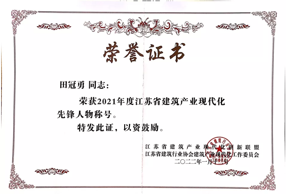 和能人居科技榮獲“2021年度江蘇省建筑產業現代化突出貢獻單位”獎,以及“2021年度江蘇省建筑產業現代化優秀項目獎”,同時,和能人居科技副總裁田冠勇被授予“2021年度江蘇省建筑產業現代化先鋒人物稱號”。
